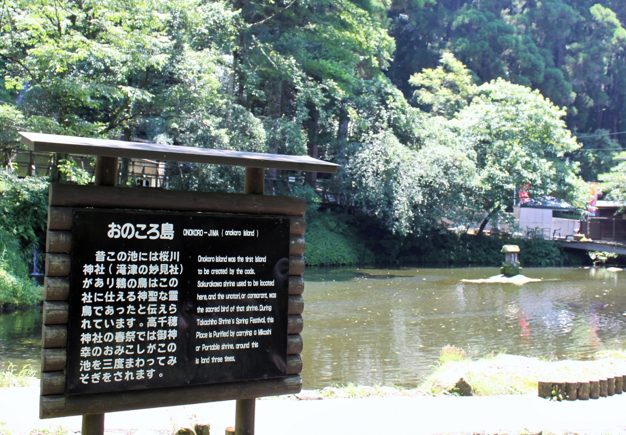 中心あたりにあるおのころ島は、イザナギノミコトとイザナミノミコトが持つ天沼矛の先から落ちたしずくが、固まってできたと伝えられる島です。