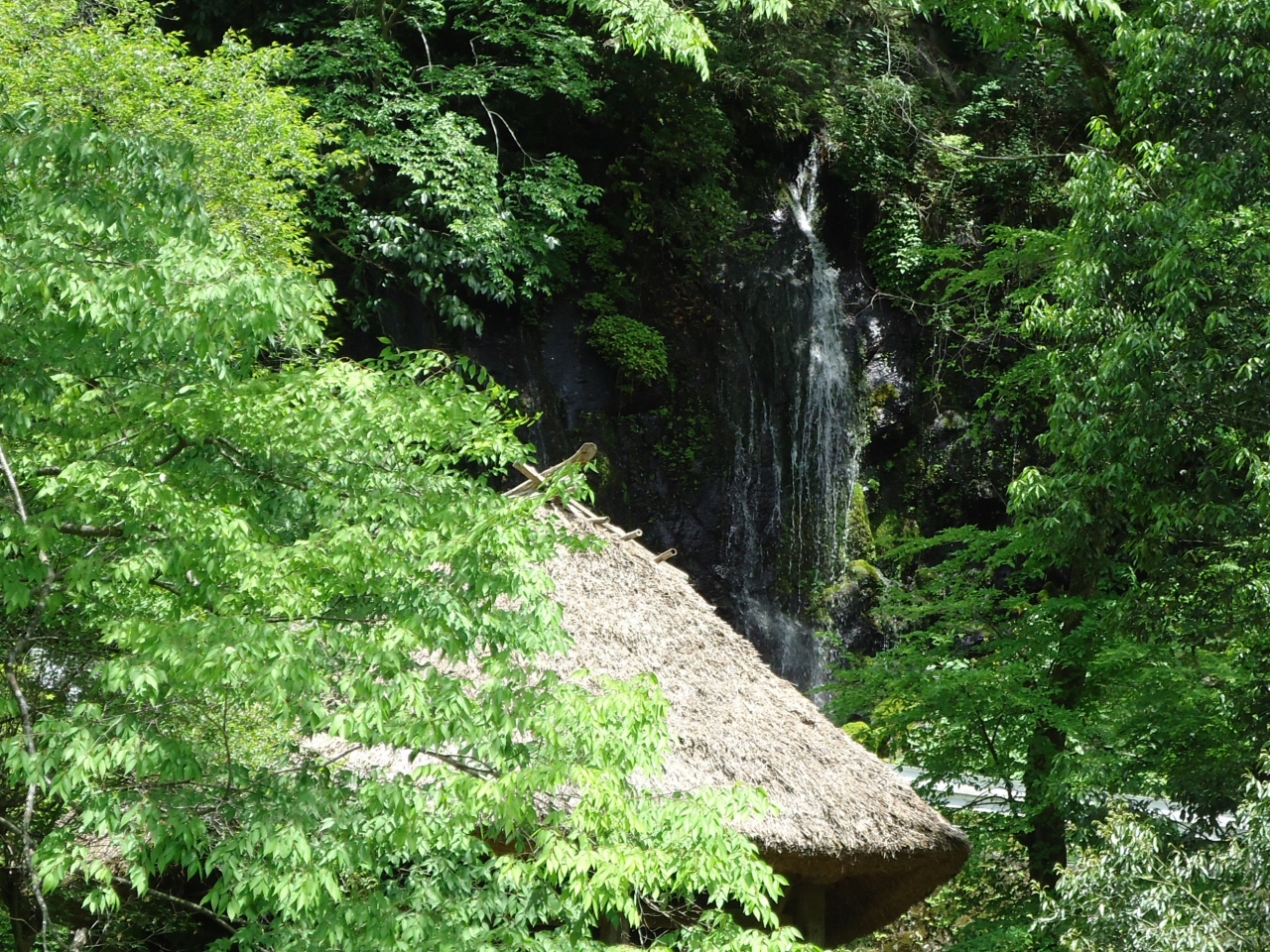 柱状節理の岸壁からいく筋もの岩清水が出ていて、涼しげですね。