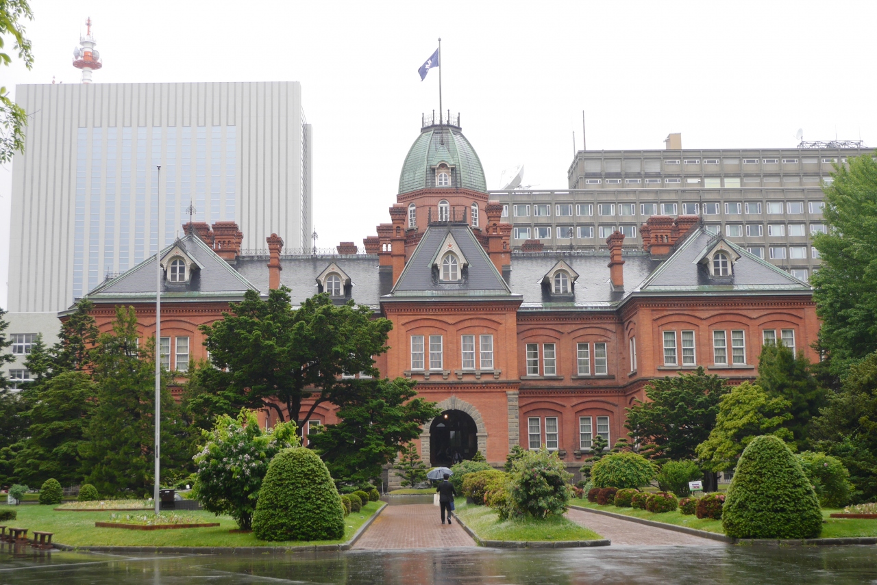 札幌観光の目玉の一つ、旧北海道庁、赤れんがの建物です。北3条通りの突き当たりにあり、札幌駅からも近く多くの観光客が訪れていました。