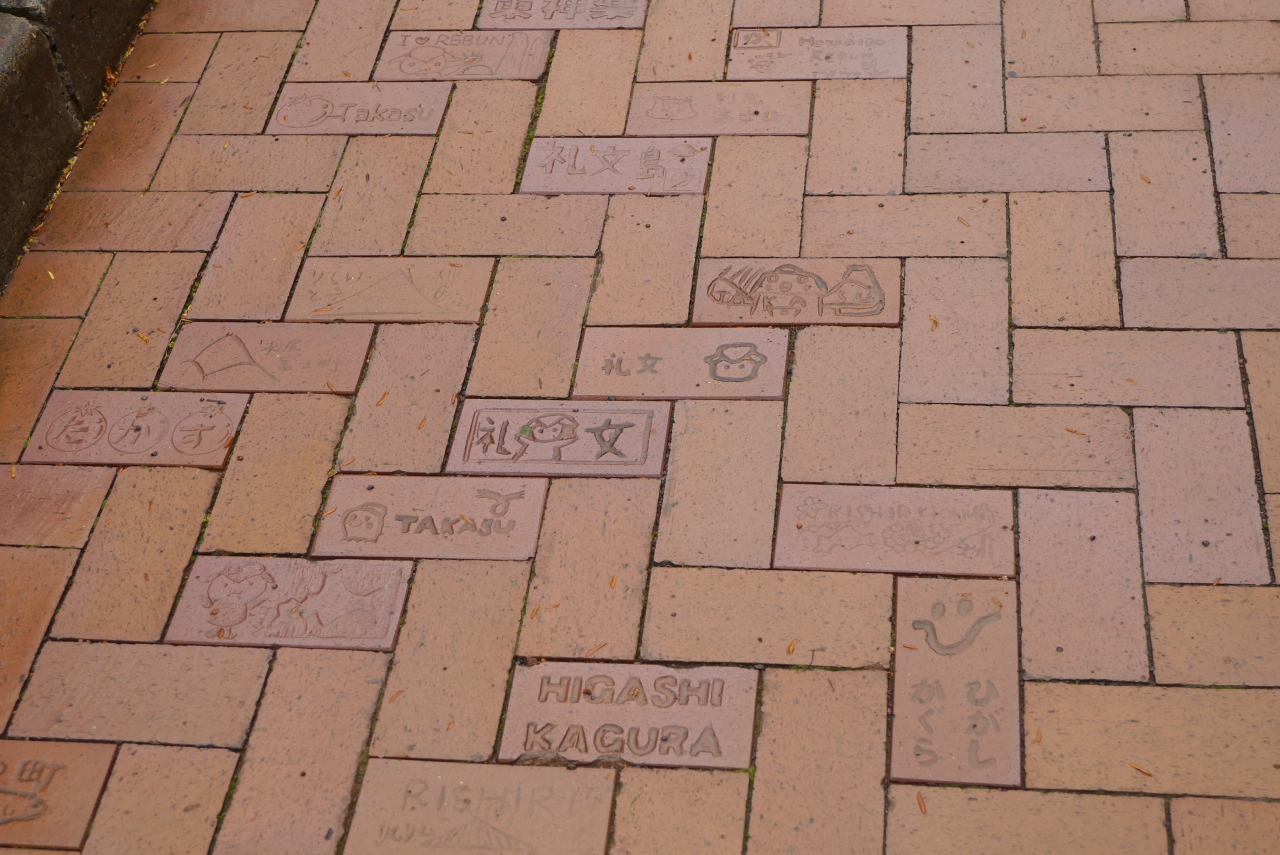 どっしりとした門の前には道路元標が置かれ、前庭には北海道の花々が咲き乱れています。建物に向かう通路に敷かれたレンガには北海道を感じさせる手書きで描かれた文字がいくつも見られました。