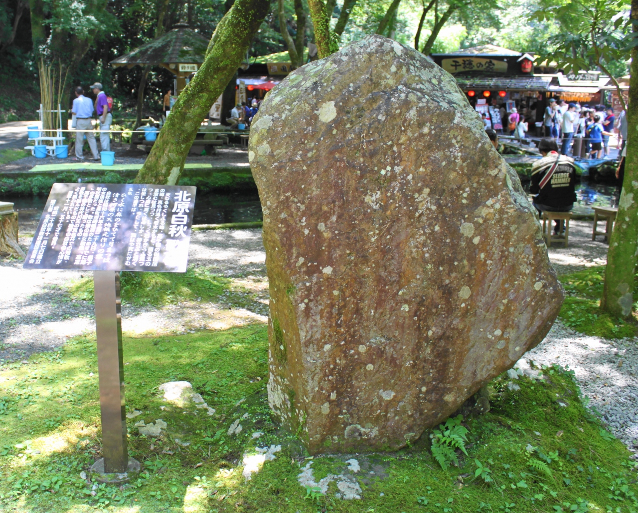 大きな自然石の歌碑は苔むして、刻まれた歌は殆ど読めないですね。