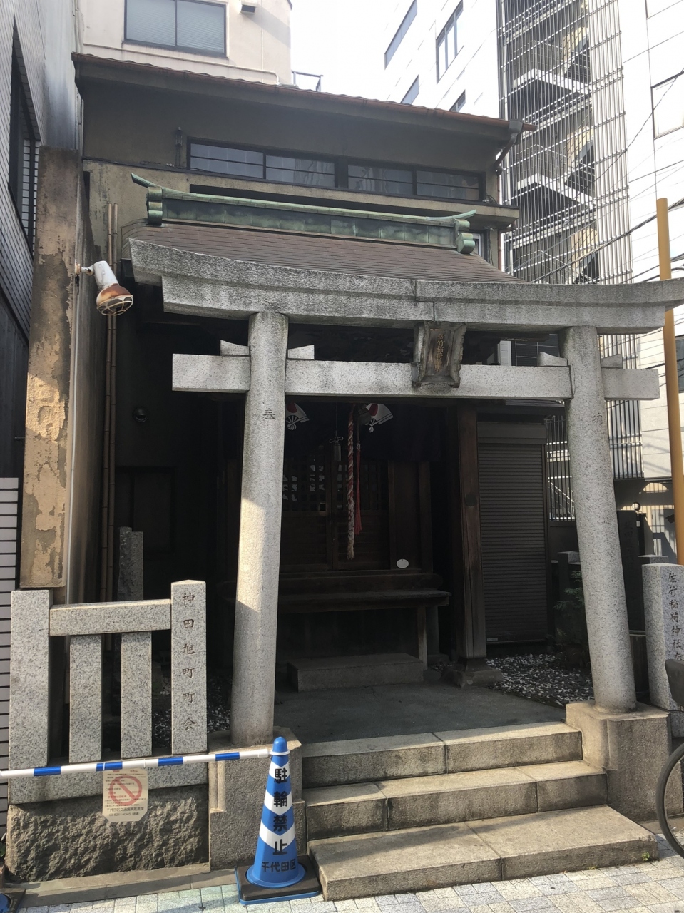 あJR神田駅西口の商店街の中にある小さな稲荷神社です。駅からはゆっくり歩いても4~5分でつきます。