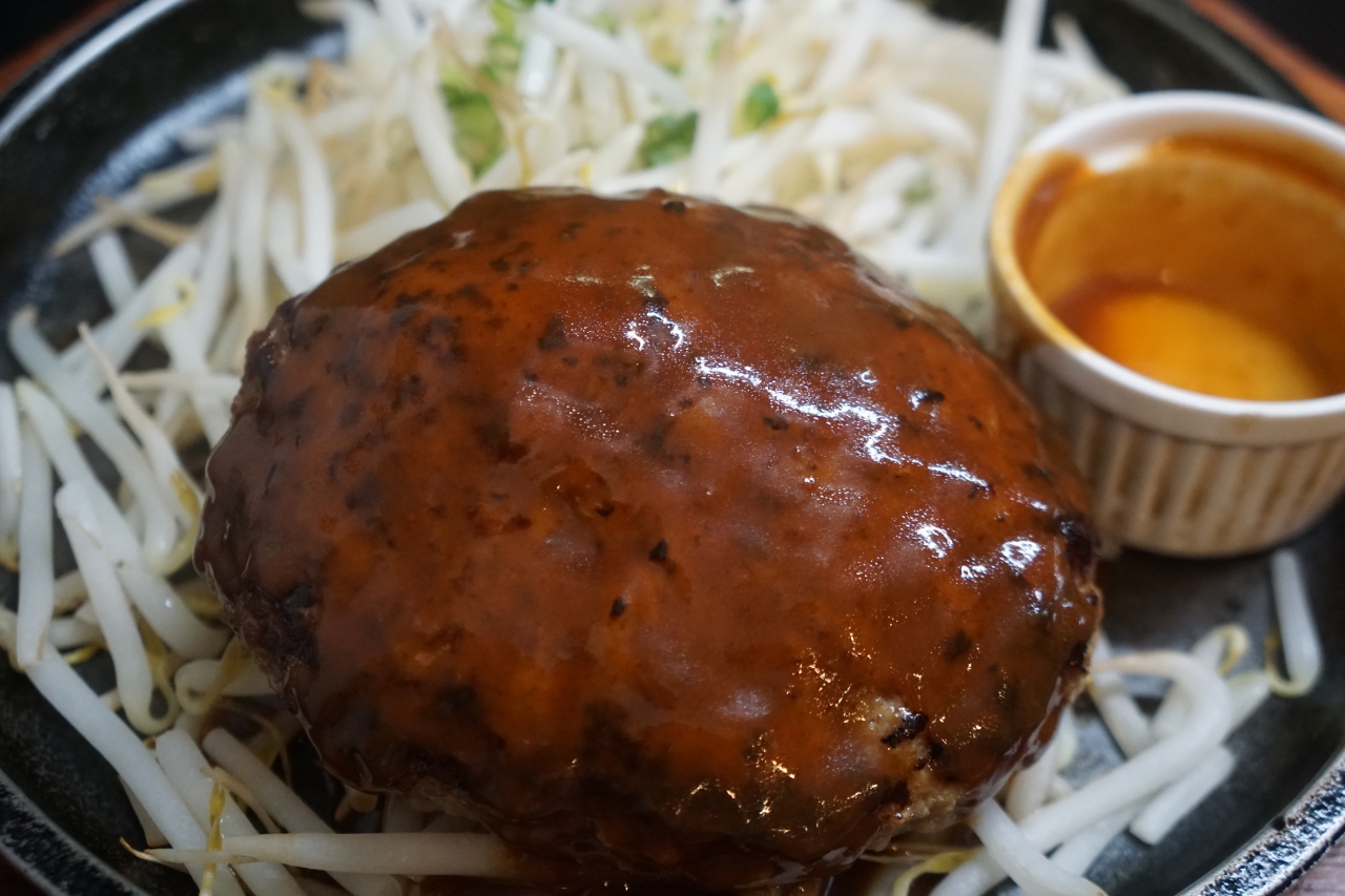 ハンバーグトレインは、日暮里駅前のステーションガーデンタワー三階。ここは、日高屋が目立っているだけで、あとはちょびちょびのイメージなんですが、ここはまあ悪くないです。てごねハンバーグをいただきましたが、実直そうなご主人が丁寧に仕上げた感じ。肉がギュッと詰まっていて、ハンバーグを食べたぞという満足感が湧いてきます。
