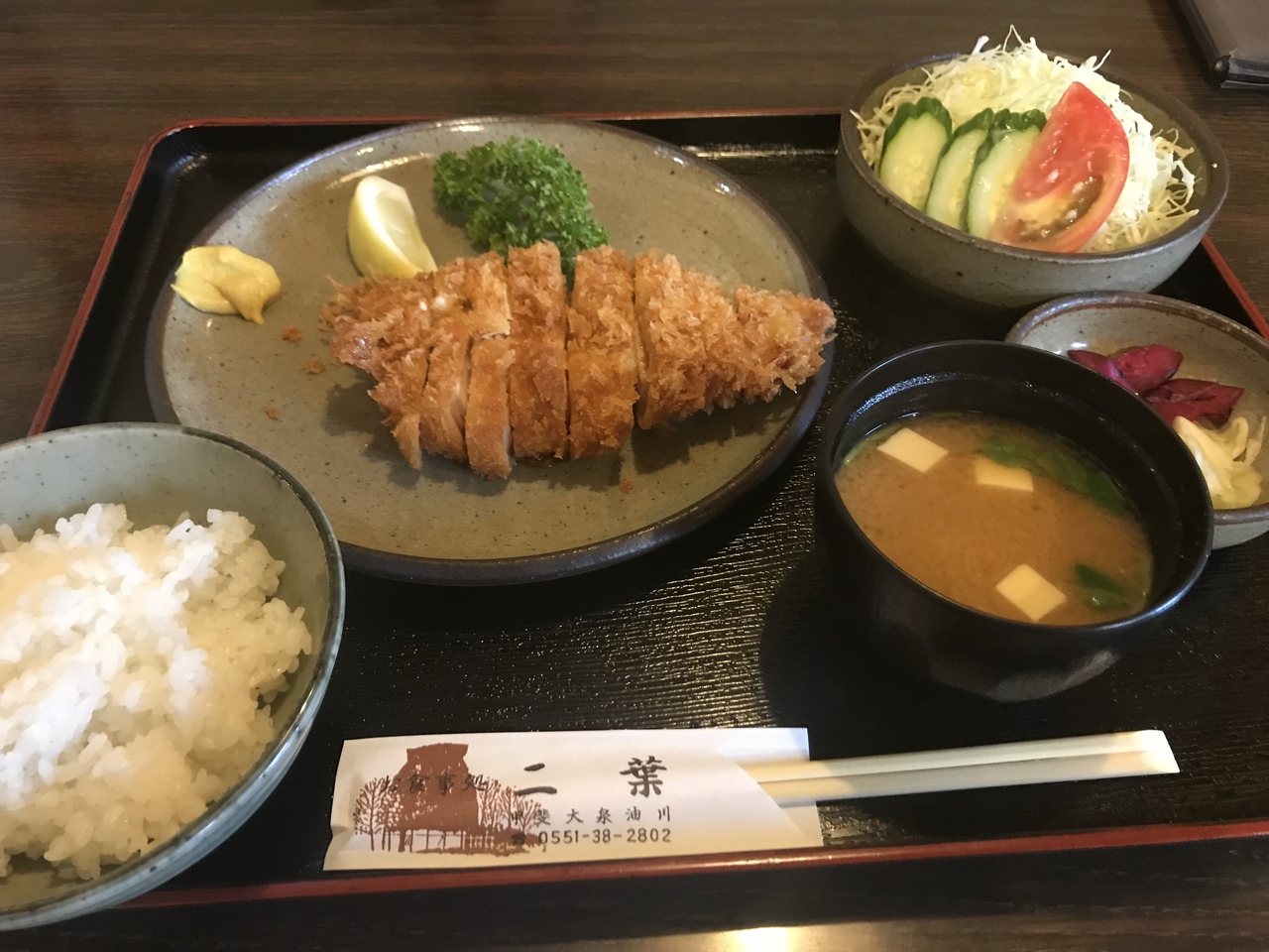 清里にあるとんかつ屋さんです。夕食を食べに17:30頃訪れましたが、混んでいました。座敷席が2席とテーブル席が5,6席くらいで、駐車場もありました。とんかつとぎょうざカツというオリジナルメニューを注文しましたが、どちらもおいしかったです。