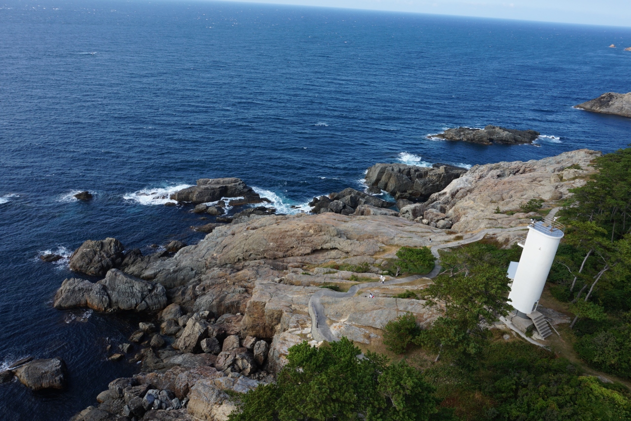 出雲の最西端の断崖にそびえたっています。高さが約43メートルで石積の灯台では日本一の高さらしいです。中にはいって163段の階段をひたすら登って上に上がります。狭いので、離合の際は下り優先です。観光客がけっこう多かったので、気を付けてください。登りついた先では360度の絶景を見渡すことが出来ます。