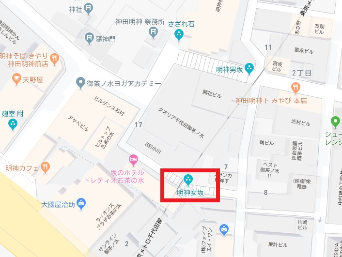 明神女坂は、明神男坂の南側にあり、神田明神の本殿に至る間の階段です。