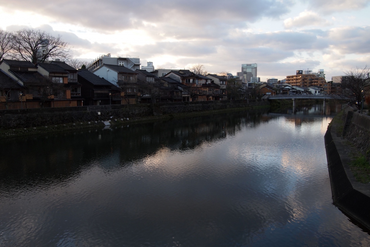 最寄りのバス停からひがし茶屋街へ向かう途中に通る大きな川です。