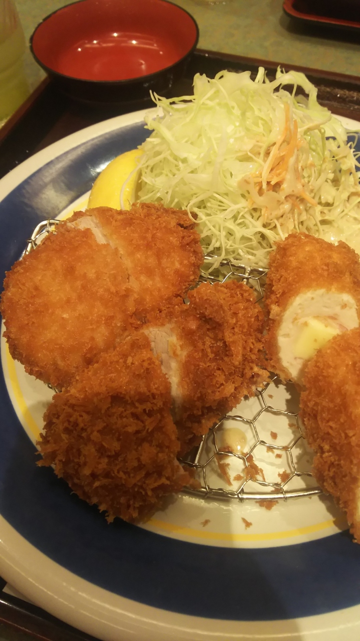 私はヒレカツが柔らかくてすきなので、ヒレカツや他のチーズロールのカツなども乗った定食にしました。