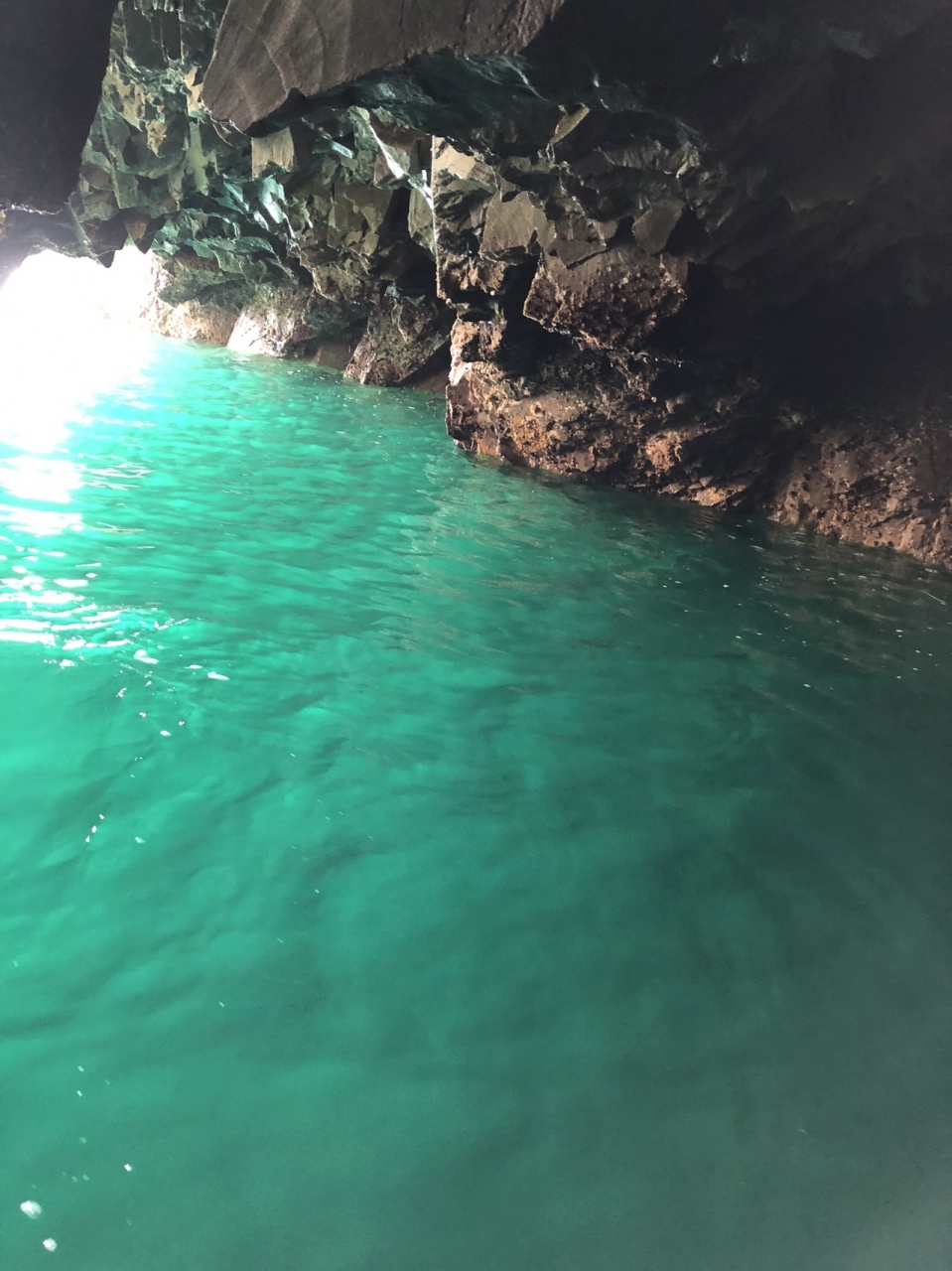 青の洞窟は小さな穴をくぐって入るというよりは、海に開いた横穴に入るという感じです。時間によって色が変わるらしいですが、船頭さん曰く「午前中の方が綺麗」とのことでした。