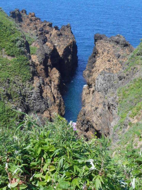 能登半島のドライブの観光で、有名観光地のヤセの断崖を訪問しました。駐車場から断崖の展望台へ行き、そこからさらに500メートルくらいの場所なので、歩くので大変ですがここの景色は不思議で面白いです。たしかに小舟が隠せそうな岩の割れ目がよく見えて迫力ありです。