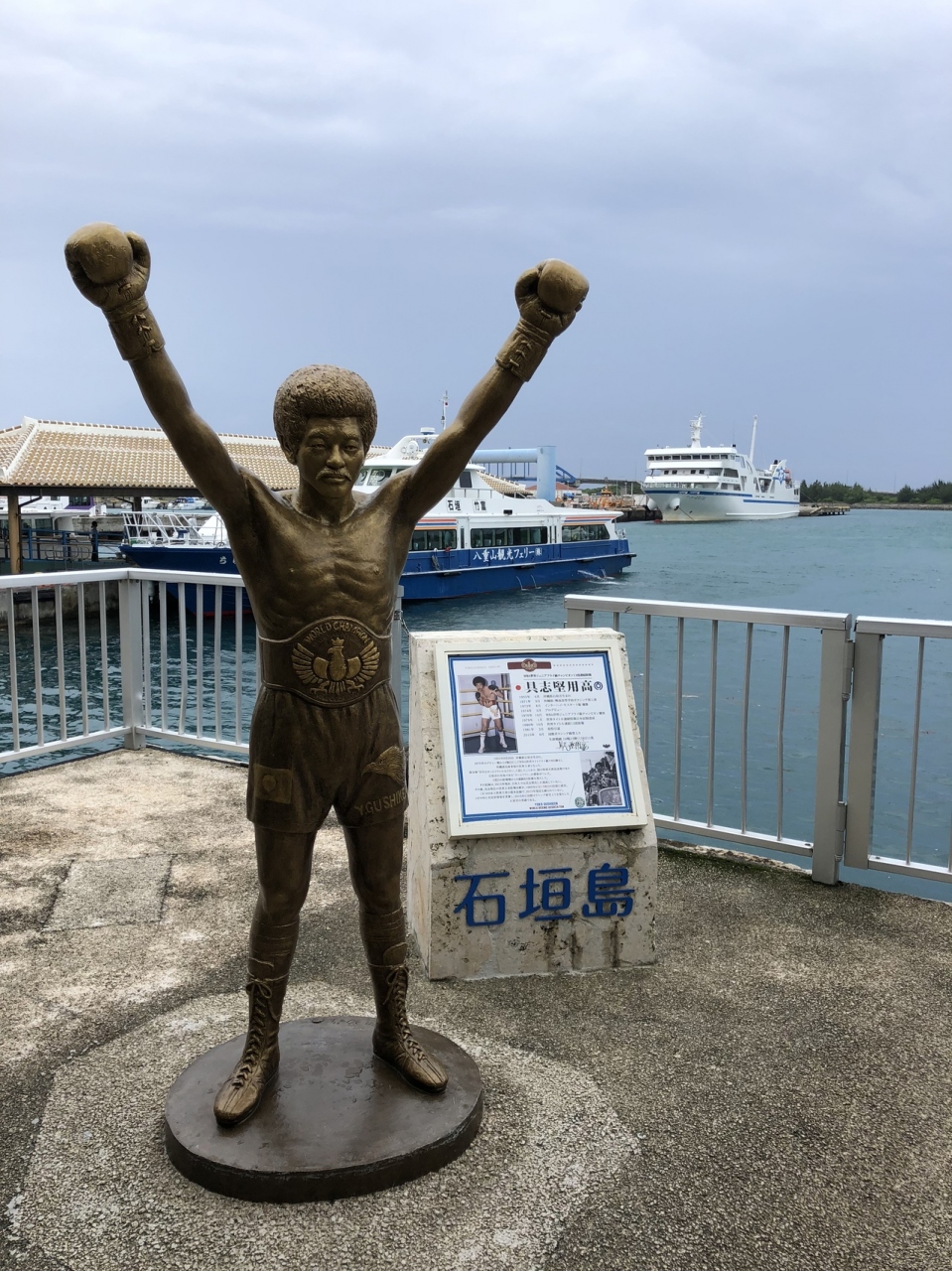 離島ターミナル桟橋のところに石垣島出身の元プロボクシング世界チャンピョン「具志堅用高」さんのモニュメントがあります。