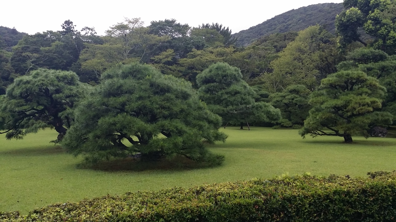 鳥居を抜け橋を渡ったあと右側へいくと開かれた道へ。きれいに手入れされた木を眺めながら進みます。