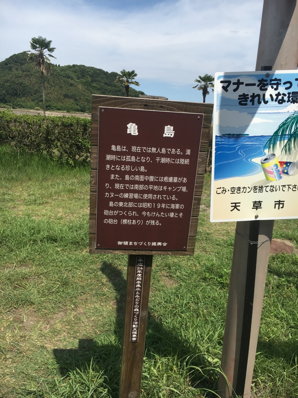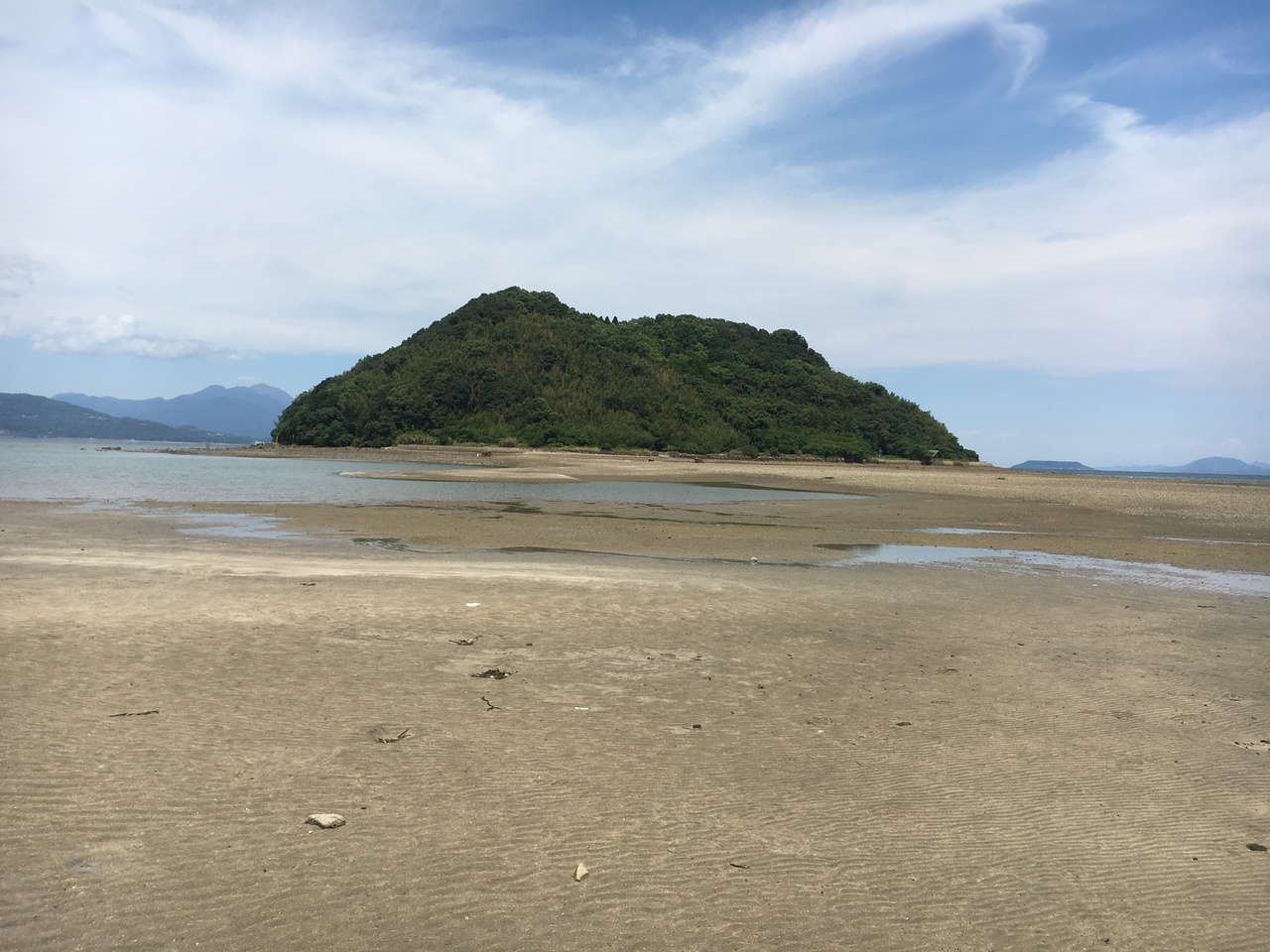 熊本市内からはだいぶ時間はかかりますがオススメしたいのが亀島!海の満ち引きにもよると思うんだけど、海岸と島が陸続きになります!島に渡れるようになるけど、帰りに道がつながってるのかわからないので、渡らない方がいいかも!