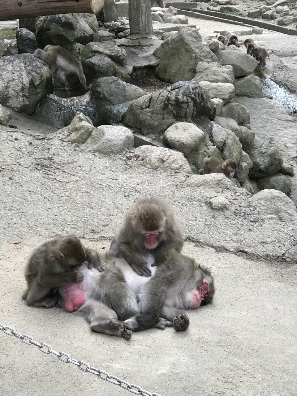 人間側が威嚇したりしなければ、基本的には猿たちは攻撃してきませんが、仲間内で喧嘩したり、食事の時は猛スピードで駆けつけるので、小さなお子さんは気をつけた方がいいと思います。