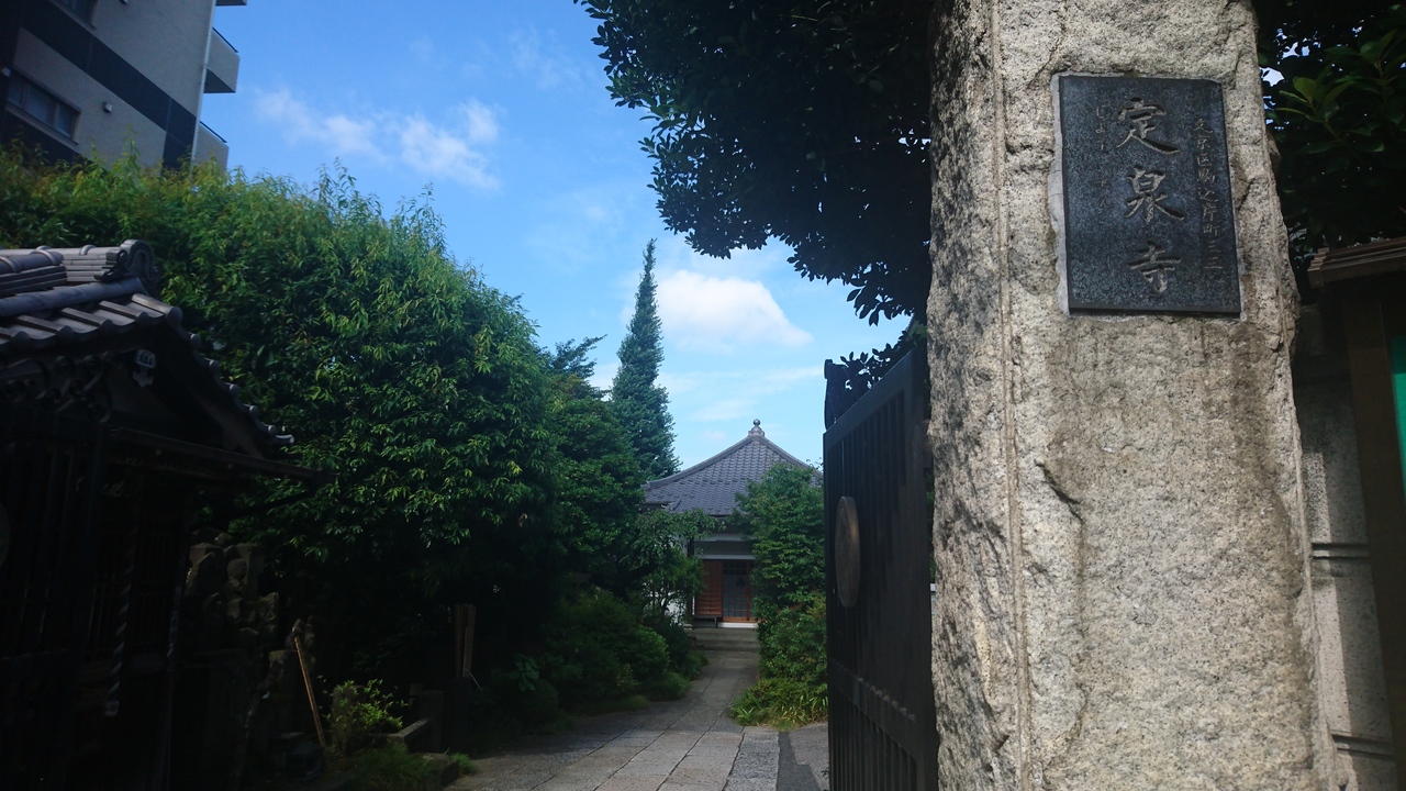 本駒込駅そばにある浄土宗定泉寺は1621年に本郷弓町に創建され、明暦の大火後にこの地に移転しました。高い建物の間にひっそりと建っており、間口は狭いのですが、奥行きは意外とありました。江戸三十三観音霊場にも数えられる由緒正しい寺院です。