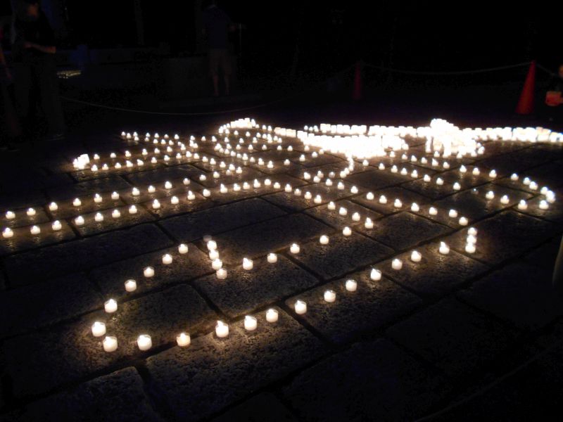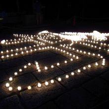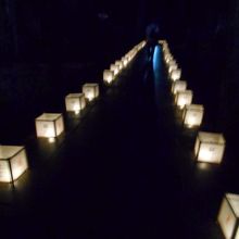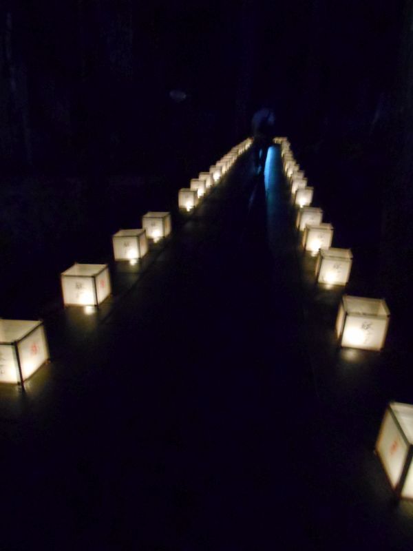 暗闇の中ろうそくに照らされた参道を歩きます。ろうそくはずっと向こうまで続き、不思議な世界に迷い込んだ気分です。神妙な気持ちで歩いて、お参りするのも、良い経験になりました。