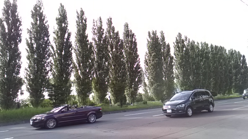 どのくらいの樹齢かわかりませんが、北大のポプラ並木よりも背が高く、並木のスケールが違います。見る分にはきれいですが、初夏はポプラの綿毛が飛ぶので、車の窓を開けていると入り込んできます。