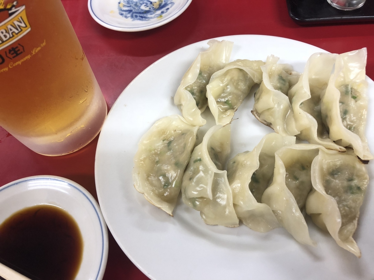 餃子は小さめで、1人前10個です。30個食べました。