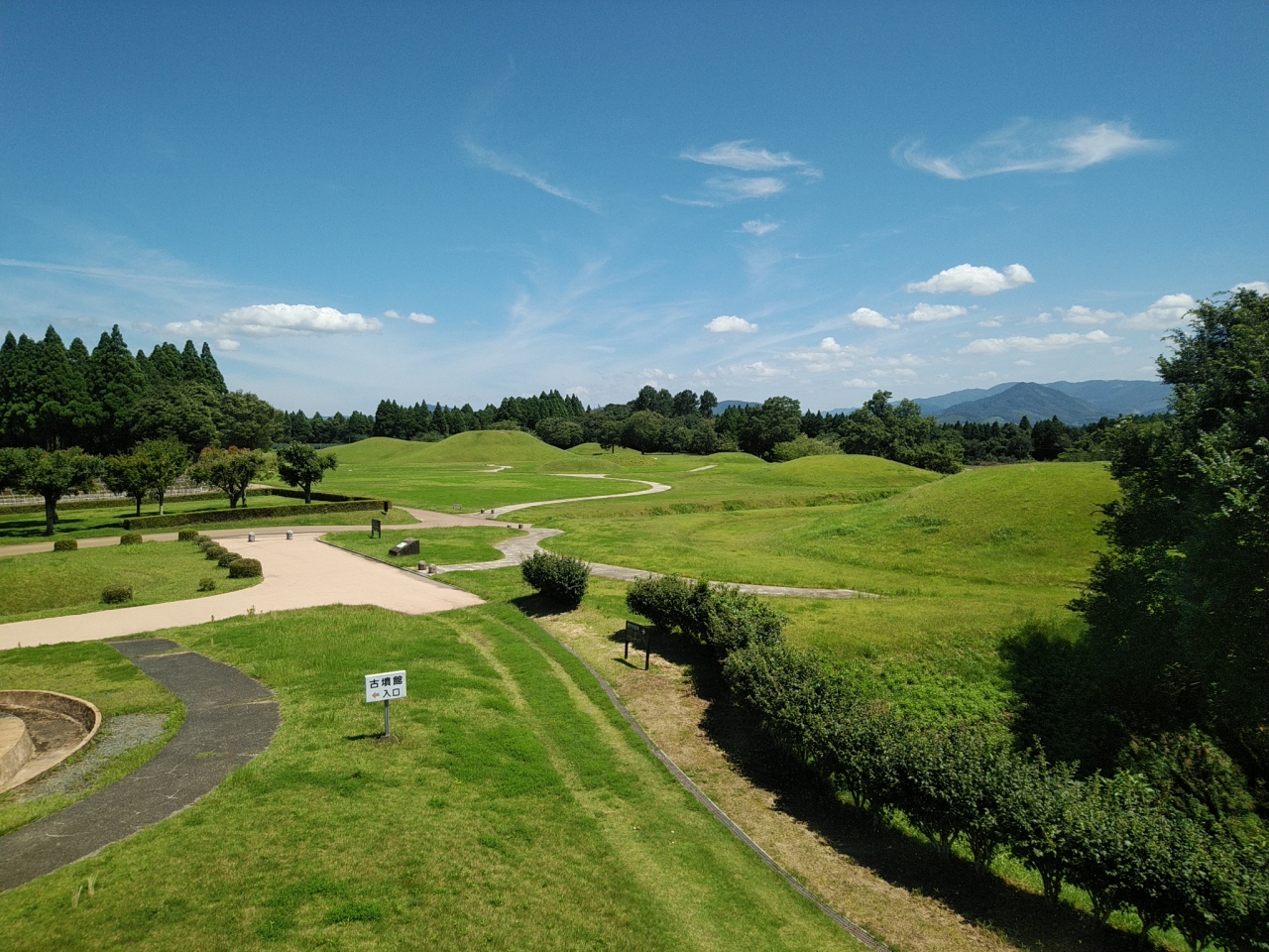 建物も独特である。この近くには前方後円墳なども残っており、散策することもできる。