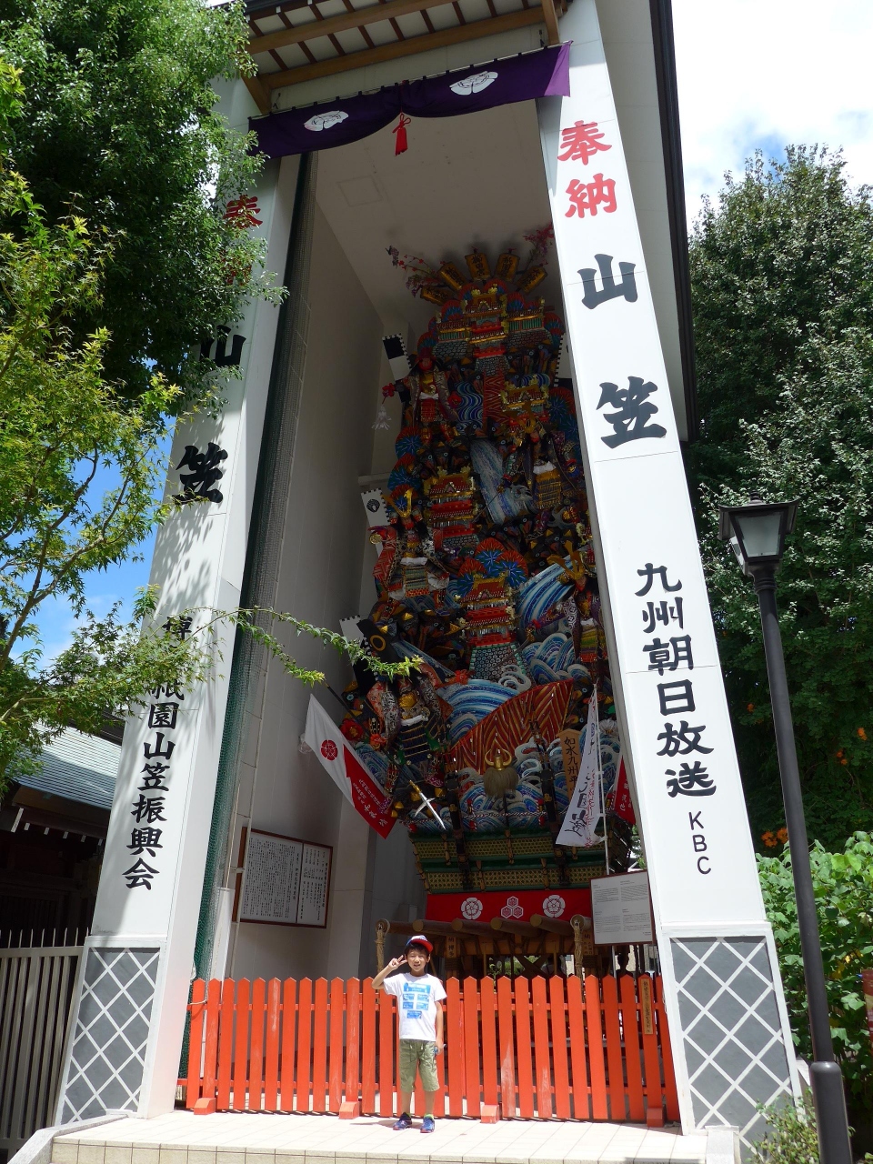 櫛田神社を孫と参拝をするのは初めてのことであり本殿の左手にある博多祇園山笠の飾り山笠を見て大きさにびっくりする孫でした。参拝をし本田横の100円おみくじで大吉が出てまた大喜びしていました。博多に居たらきっと大きくなって山笠の時期に何度となく訪れる神社になると思いました。