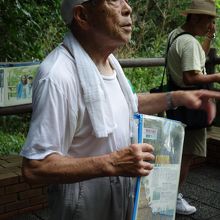 第一展望台に、湧水群について説明をしてくださるお爺さんが居ます。この湧水群を守るために土地を買い取っている方です。話を聞いてみてください。
