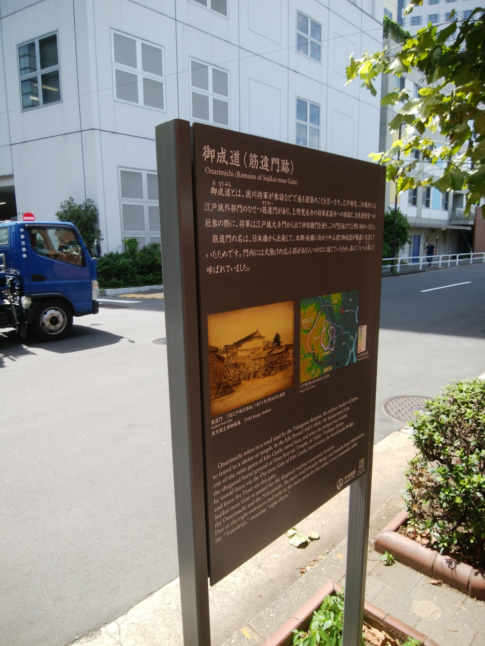 八月の暑い日であったが、昌平橋から万世橋に向けて御成道を歩いた。ここは江戸時代、江戸城から上野寛永寺へ向かう道とのことで賑わっていた場所らしく、案内標識が出ていた。残念ながら、現在では中央線高架沿いの路に風情はあまり感じられなかった。