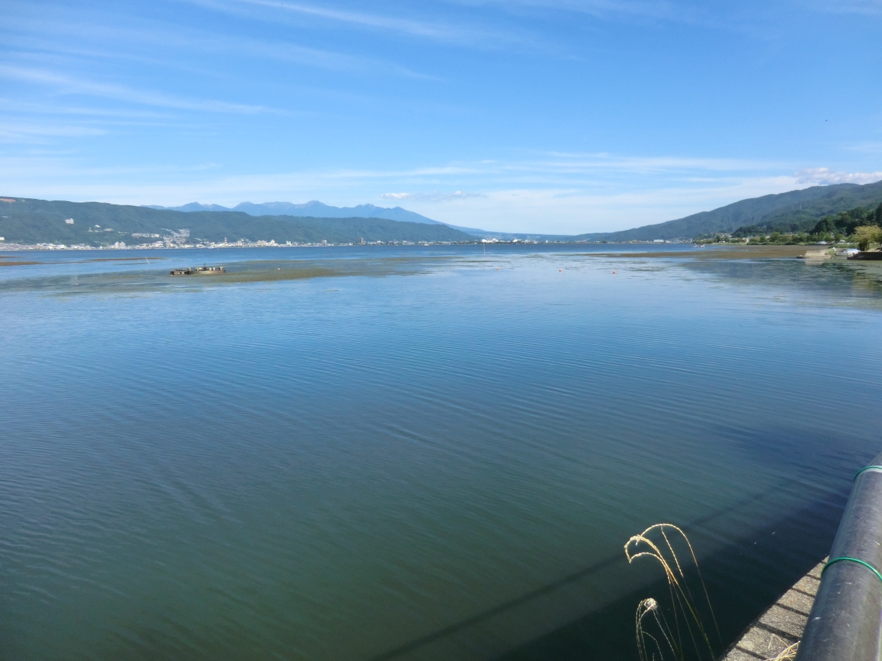 糸魚川静岡構造線と中央構造線の分岐点にある湖で天竜川の水源です。水はあまりきれいとは言えませんでした。中央本線から見ることもできます。夏に行ったので水面は緑色でした。諏訪湖の西側では噴水が上がっていました。