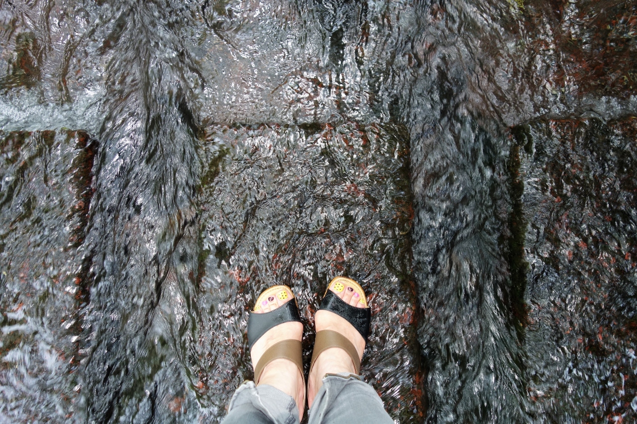 濡れても良い靴で(或いはすぐに脱げるような靴で)訪れてください。