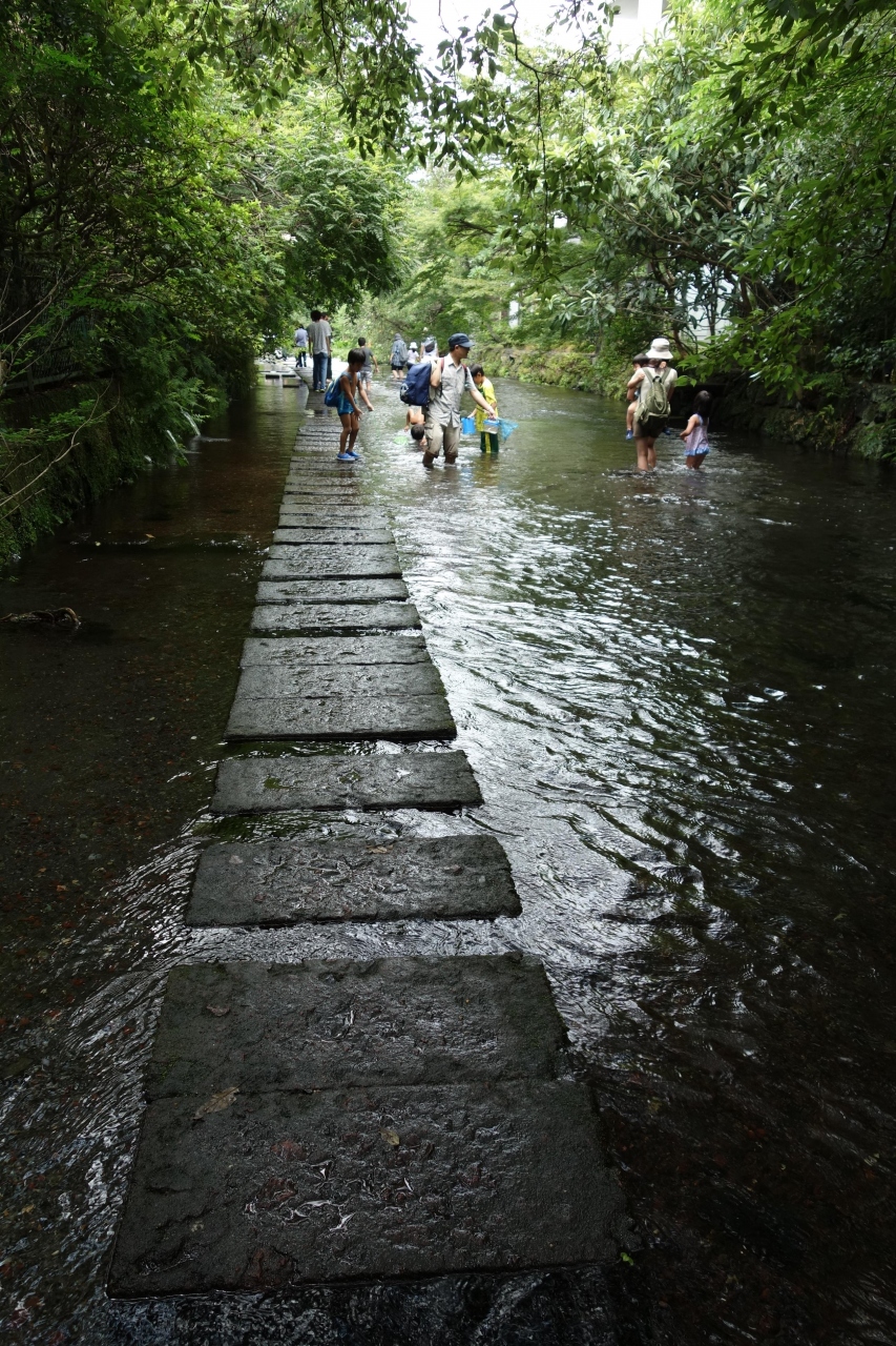 それでも此処の川の中に入って、足を濡らしてみれば話は別です。子供だけでなく、大人も足を浸けて遊んでいます。街中にこんな流れが在るって良いですね。