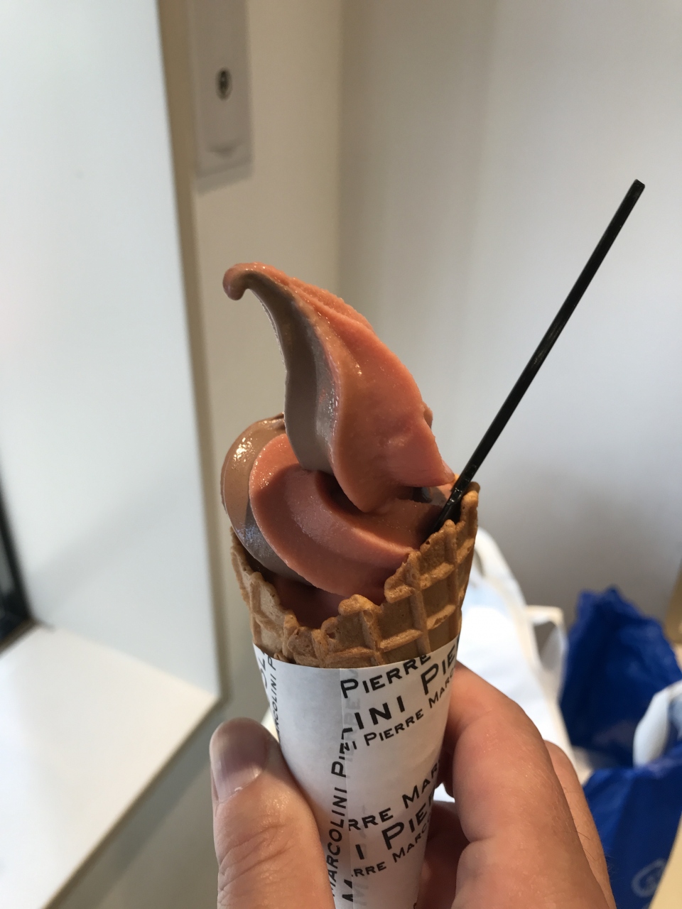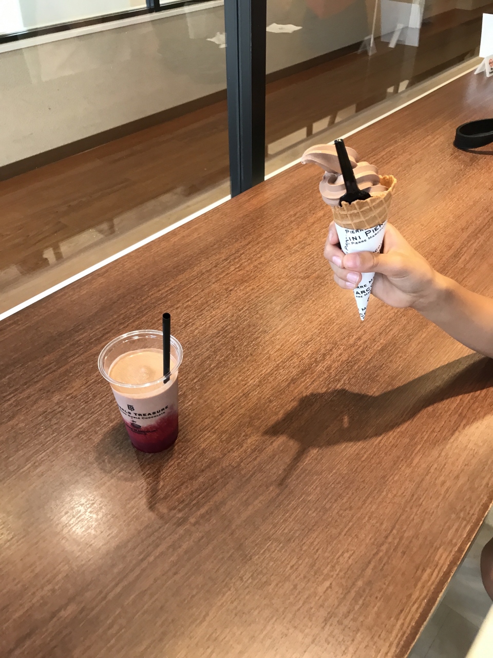 酒々井プレミアムアウトレット内にあるピエールマルコニーにでアイスをテイクアウト。息子はノーマルのチョコ