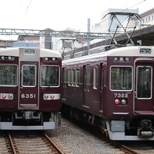 マルーン色一色の塗装で知っている人なら誰もが「阪急電車」と分かるのは阪急ブランドともいうべきなのでしょうか。座席は柔らかくて座りやすく快適に移動できます。普段あまり使うことのない私にとっては列車の接近放送がとても新鮮で乗っていても楽しい路線です。