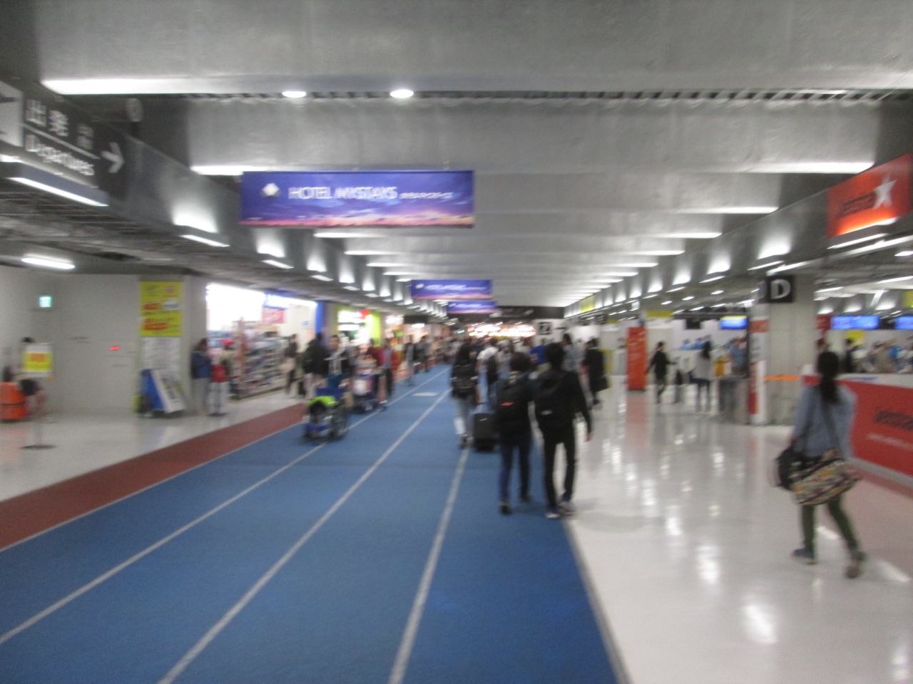 ターミナル内の床は陸上競技場のトラックのようになっているのが印象的でした。LCC専用ターミナルとは言え、チェックインカウンターがあるのは、チェジュ、スプリングジャパン、ジェットスター、バニラエアの4社でした。他のLCC、ピーチアビエーションやエアアジアXはターミナル1・2でしたので、間違えてターミナル3に来てしまうとかなりのロスタイムになるので利用する航空会社の確認が必要だと思いました。