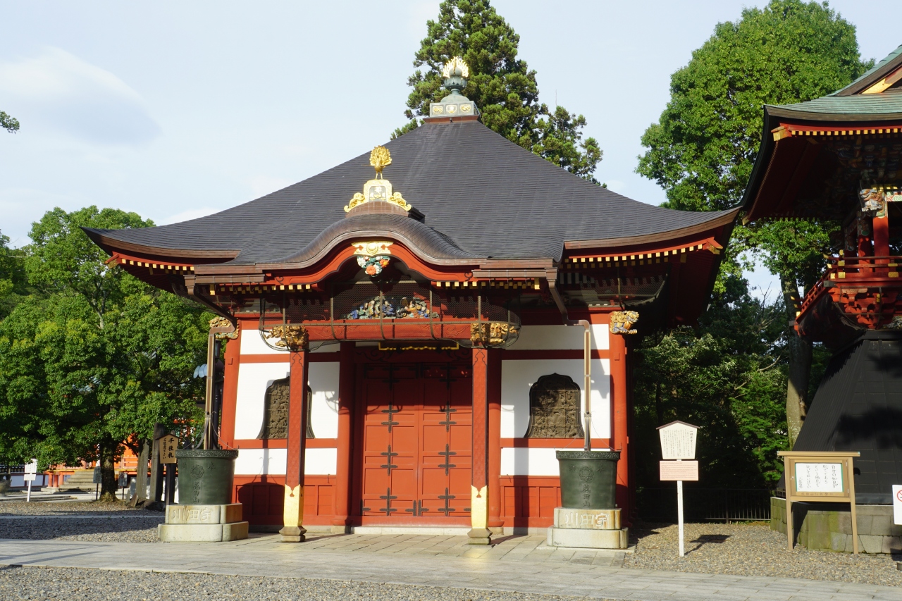 建てられたのは享保7年(1722年)。堂内輪蔵には、約2000冊の一切経が納められています。赤が基調の色彩はほかの建物と合わせたものなので、派手な割には周囲に溶け込んでいます。