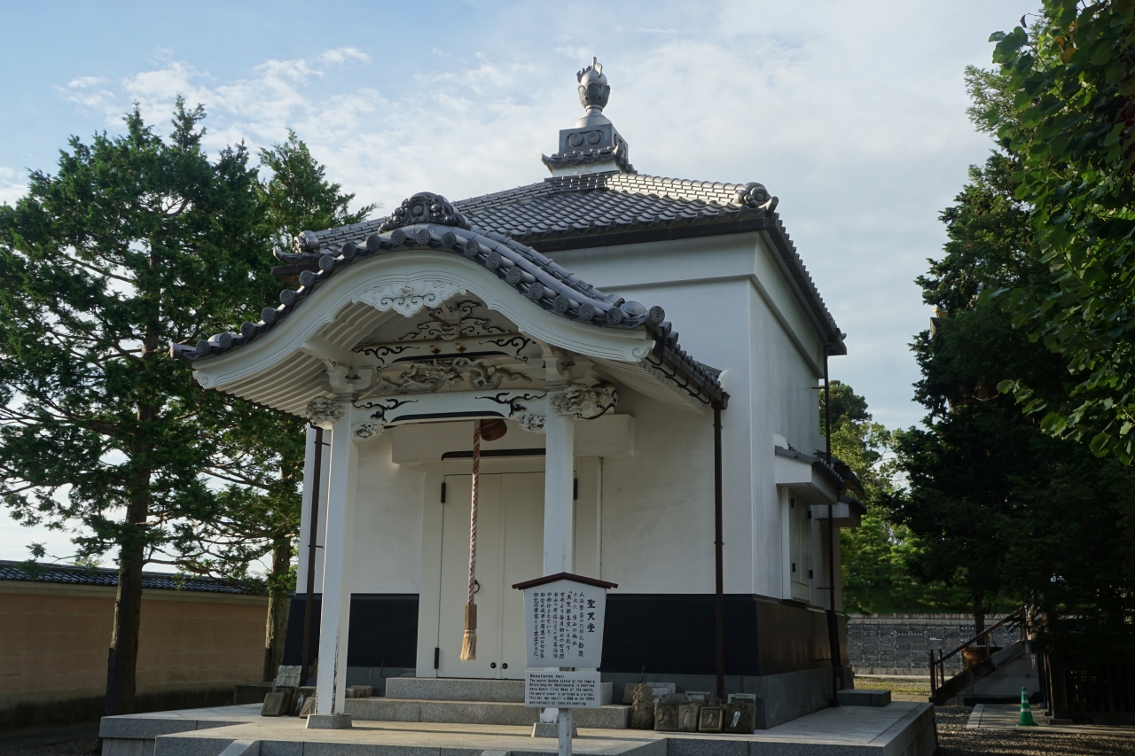 聖天堂は、本堂を過ぎて左手奥の方。釈迦堂の左隣に建つ漆喰壁の蔵のような白い建物です。