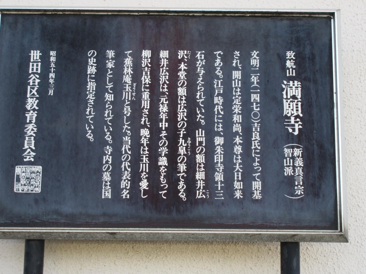 等々力駅から徒歩7分程度、等々力渓谷とは反対側になります。すぐ隣は玉川神社になります。真言宗智山派、本尊は金剛界大日如来です。ご本堂は吉田五十八氏という数寄屋造りの第一人者の設計で、とても立派です。また境内には細井広沢の墓があります。