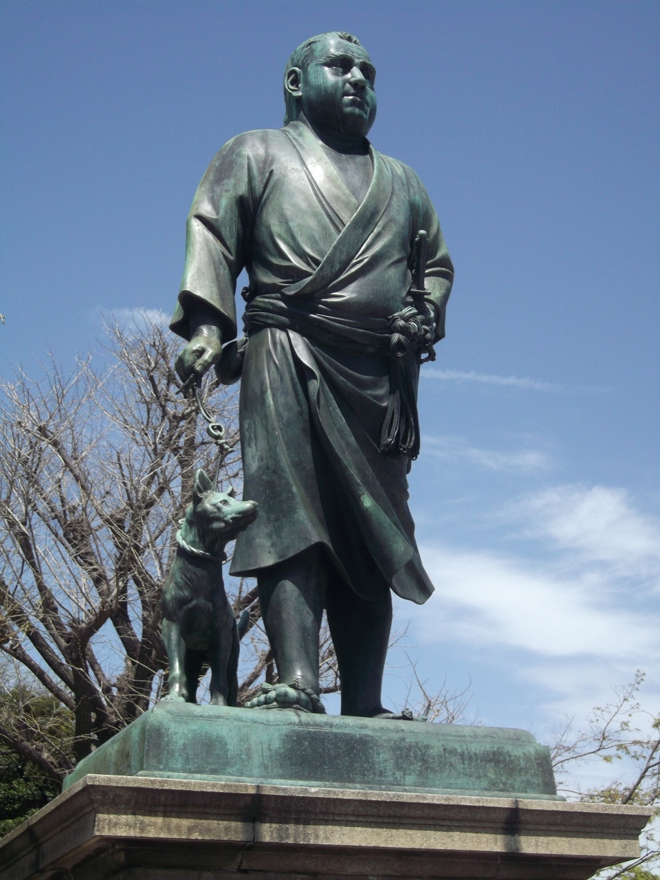 上野公園の一番南側、高台にどっしりと構える西郷隆盛像です。近くで見ると像の大きさには驚かされます。それにしても恰幅も良く堂々としていますね。服装はちょっとラフな感じもしますが、犬を連れた姿はまさに銅像にぴったりだと思いました。