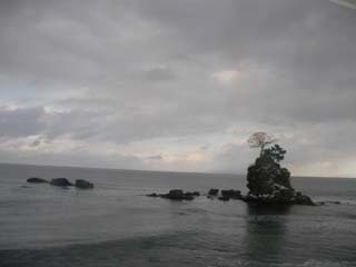 高岡駅の氷見線のホームから氷見行きの忍者ハットリ君が書かれた普通列車に乗って各駅に停車して、越後国分駅を過ぎて海沿いを出て、次の雨晴駅までの間の雨晴海岸から冬場の日本海側では珍しく海越しに北アルプスの山々が見えていました。