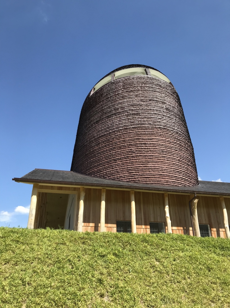 たねやの本社も兼ねている場所です。駐車場もかなりの台数が収容できそうな感じでした。中央に田んぼがあり、青々とした稲が育っていました。その田んぼを取り囲みようにいくつかの建物が配置されています。和菓子のカフェでは、ここでしか食べられない焼きたてカステラが名物のようです。また、洋菓子のカフェではクラブハリエのバームクーヘンなどを頂けます。クラブハリエのカフェの行列が特に長くて驚きました。大型の倉庫のような建物もあり、ここのはロンドンを走っていたであろう二階建てバスがドカンと鎮座しており、リーフパイなど色々なお菓子が陳列されていて、子供にとっては、すごく楽しい場所だと思いました。まるでテーマパークのような施設です。なお、特徴ある建物を設計したのは藤森照信さんという建築家です。