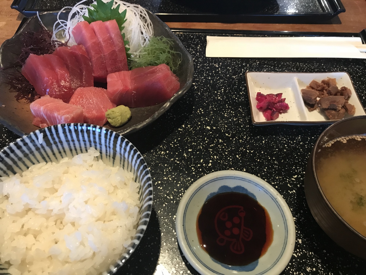 中トロと赤身のお刺身で、中トロはちょっとスジが多くて硬かった。赤身は美味しかったです。