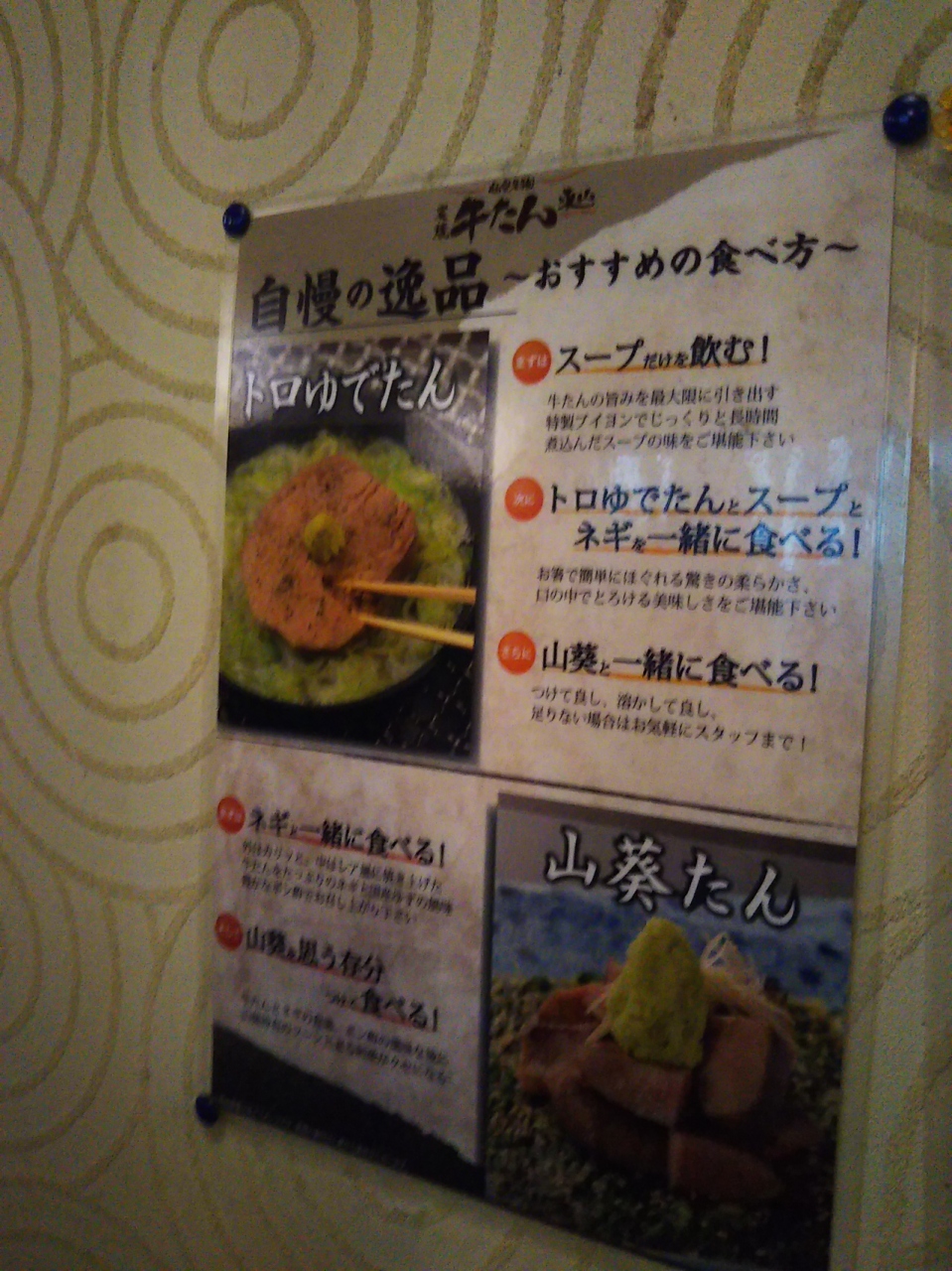 仙台駅近くにある牛タンの専門店です。仙台といえば牛タンなので早速いただきました。お店はお座敷とテーブル席があり、本店はそれほど広くありません。厚切りで炭火で焼いた牛タンはおいしかったです。麦めしととろろ、テールスープが定食にはついてきます。