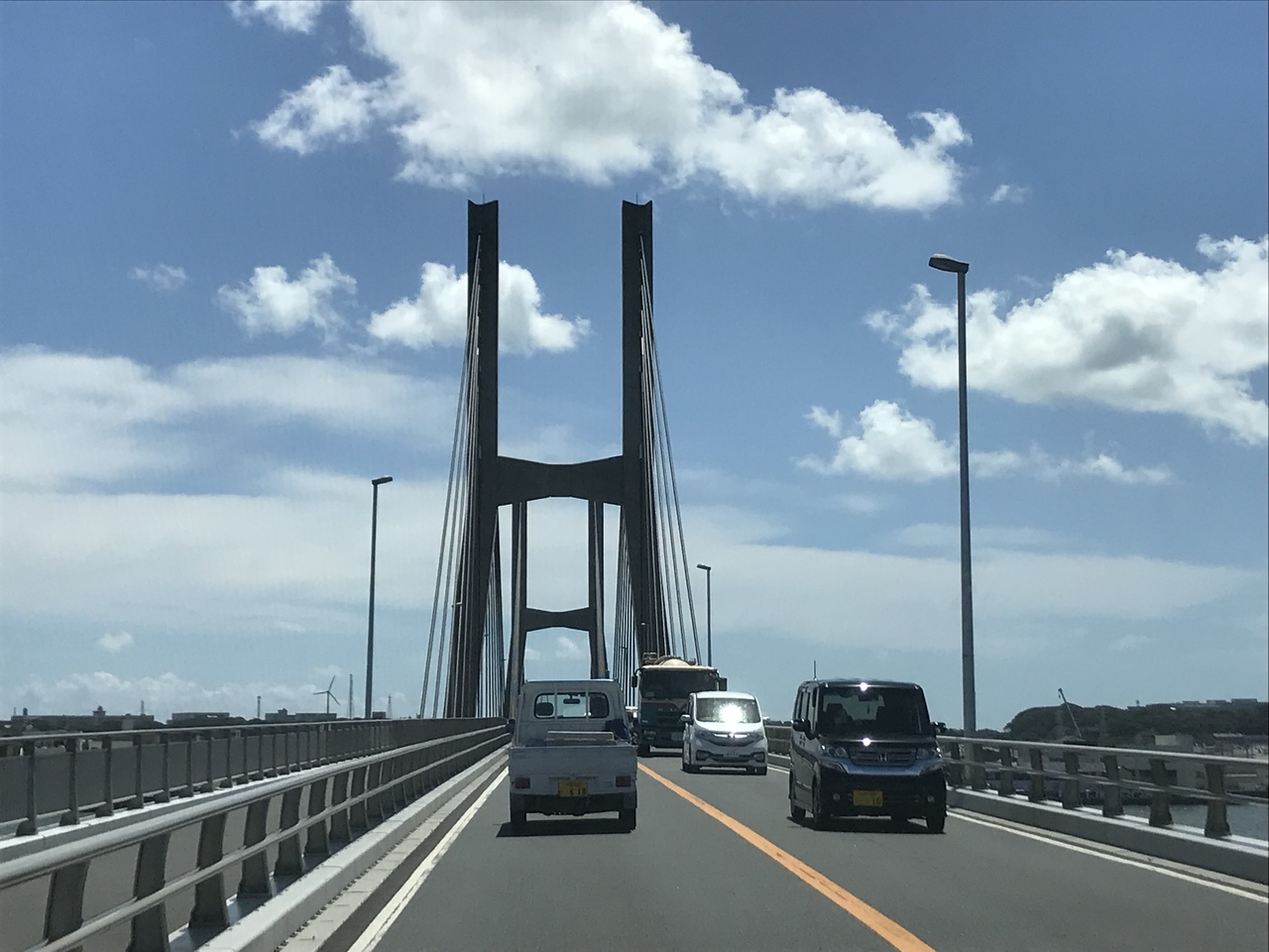 利根川の河口付近にかけられている橋で、茨城県と千葉県をつないでいる橋になっています。距離も結構長くて、立派な橋でした。自動車で通過しましたが、天気が良い日だったこともあって、橋から見える風景は気持ちの良い風景でした。