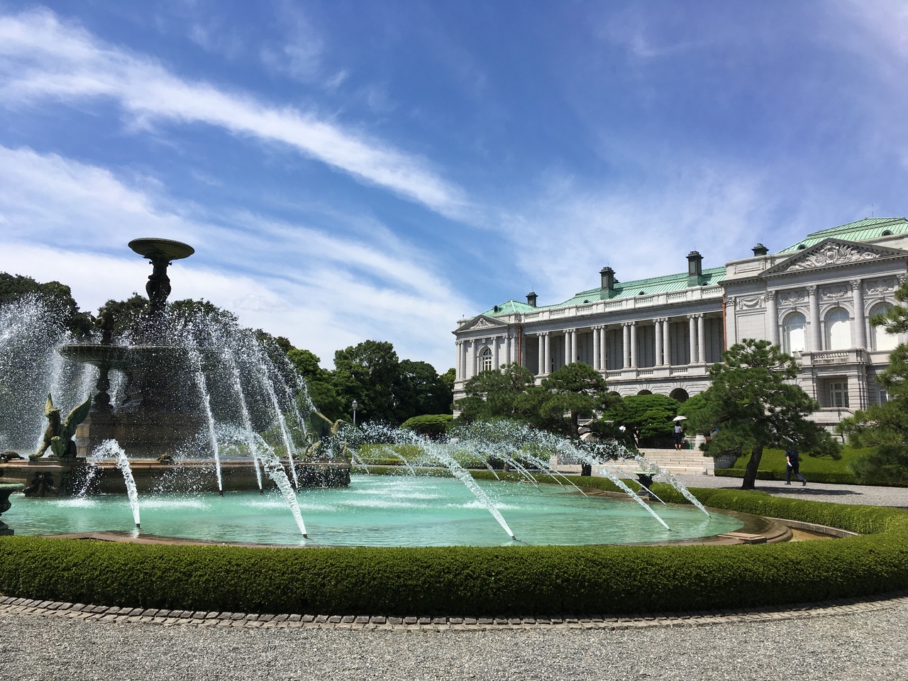 主庭には立派な噴水、その周りに手入れされた松、こちらも和洋折衷、不思議な雰囲気でした。