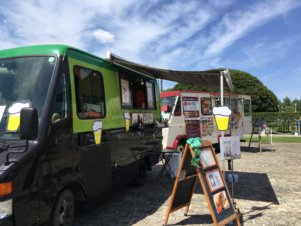 前庭にはキッチンカーが出ており、広々とした中、アフタヌーンティーやビールやカフェを楽しむことができます。