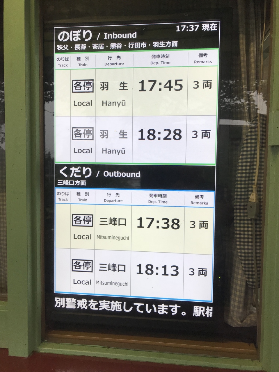 秩父鉄道で秩父駅から三峰口駅方面に3つ進んだところにある駅。一部時間帯は駅員が配置される関係なのか、しっかりとした改札口や新しく綺麗なトイレがある。ホームがカーブしている関係で、電車のドアは真ん中の2つのみ開く。