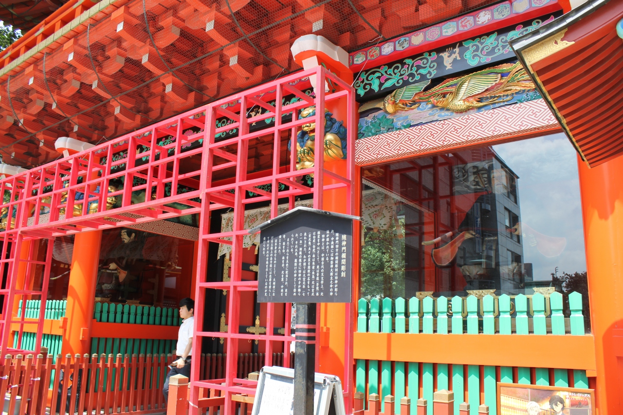 8月のお盆休み、家に誰もいなくて暇だったので一人でぶらりと秋葉原まで行きました。神田明神にお参りが主な目的です。秋葉原駅を降りて神田明神に向かいました。大鳥居を抜けて正面に真っ赤な門が見えます。随神門です。沢山の彫刻が装飾されています。