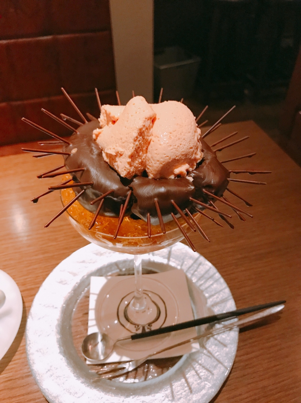 「うにパフェ」のブラッドオレンジムースが美味しかったです。