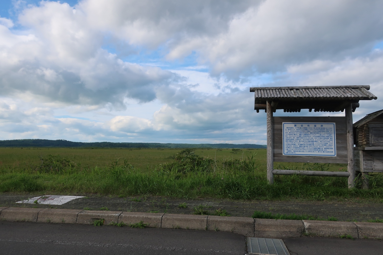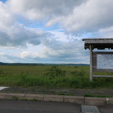 霧多布湿原を横断する直線の道、Mershy Grass Roadで、車で走っても湿原の雰囲気を満喫できるが、側道があるので歩いて行けばゆっくり湿原を探索できる。車の場合は北側にある湿原センター下の駐車場に車を置き、ここからこの道を歩いて湿原の真ん中に行くことができる。