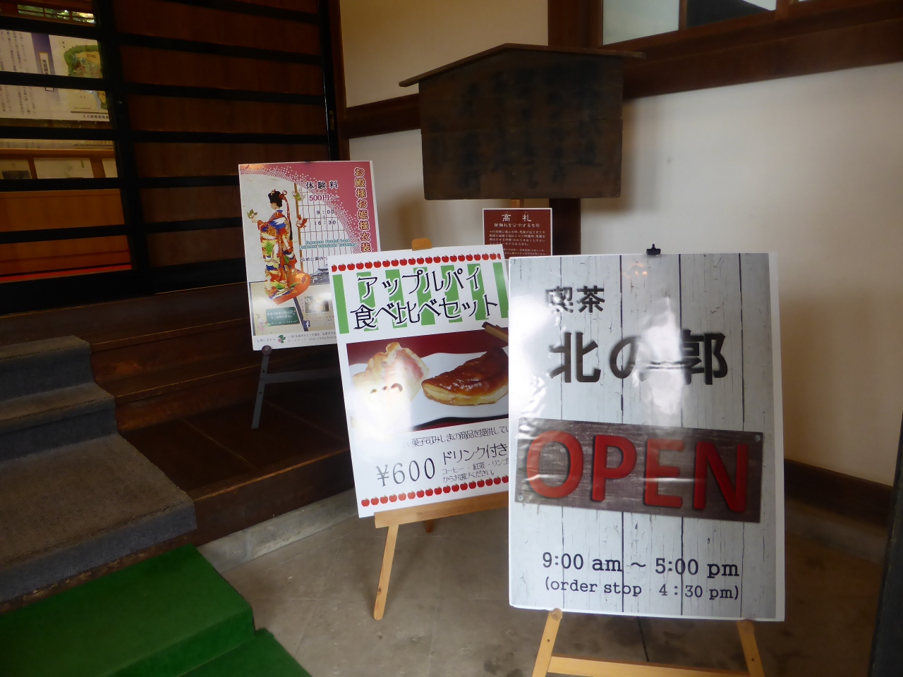 地元の名産最中やアップルパイセットが手軽な値段でありました。