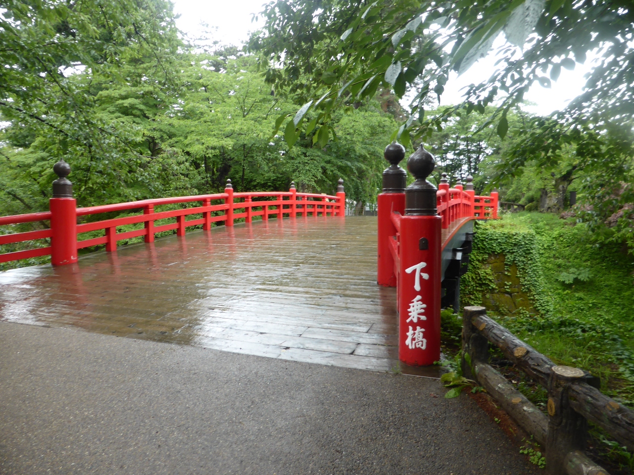 本来ならば、弘前城と下乗橋が一緒に撮影できるスポットなのですが、100年に一度の石垣工事に伴い弘前城は移動中のため、一緒に写真が撮れません。