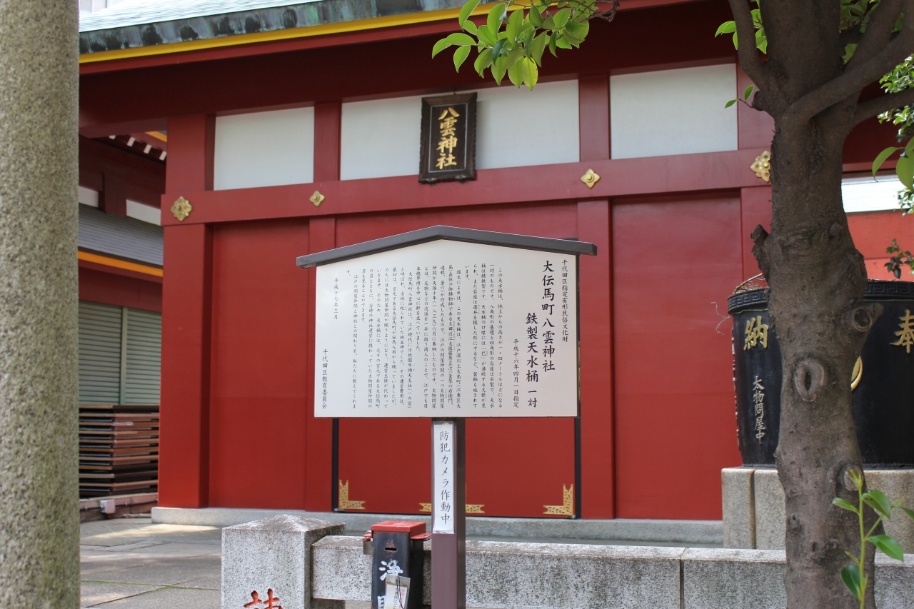 8月のお盆休み、家に誰もいなくて暇だったので一人でぶらりと神田明神へお参りに行きました。秋葉原駅から歩いて行きました。神田明神をお参りした後に境内を散策しました。神田明神の裏手には沢山の小さい神社があります。大伝馬町八雲神社もそのひとつです。江戸時代よりも前に創建されたそうです。看板に説明がありましたが意味があまりよくわかりませんでした。